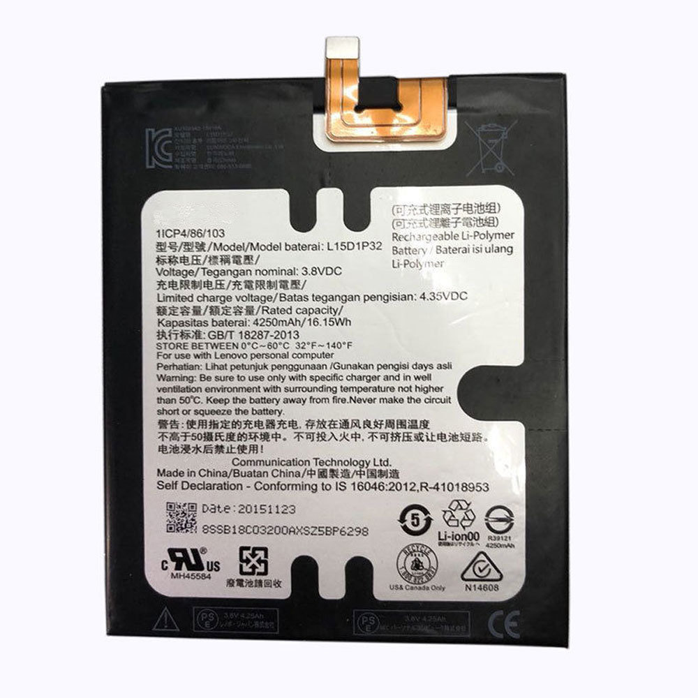 Cette énèrgie vous est fournie par notre batterie haute performance Lithium-Ion de capacité 4250mAh/16.2WH , la Batterie Telephone / Tablette pour Lenovo L15D1P32, les batteries pour Lenovo L15D1P32 sont de prix modeste .